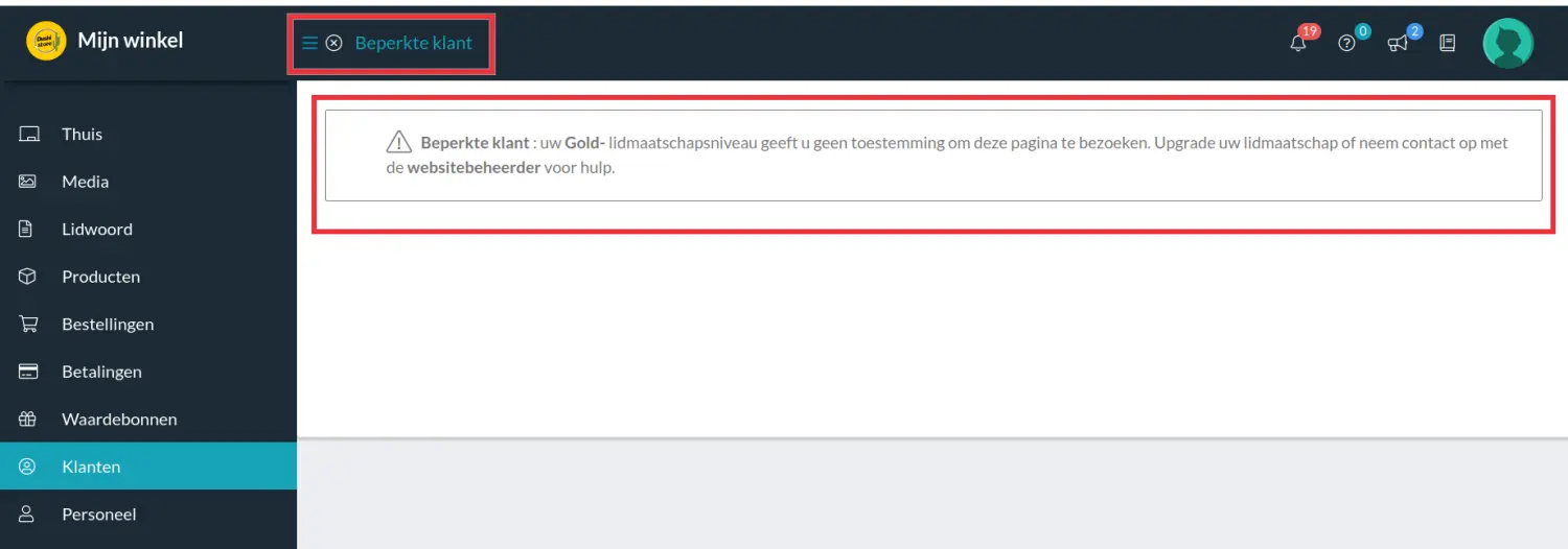 Next, click on either the Profile icon on the top right of the store manager or on Membership.