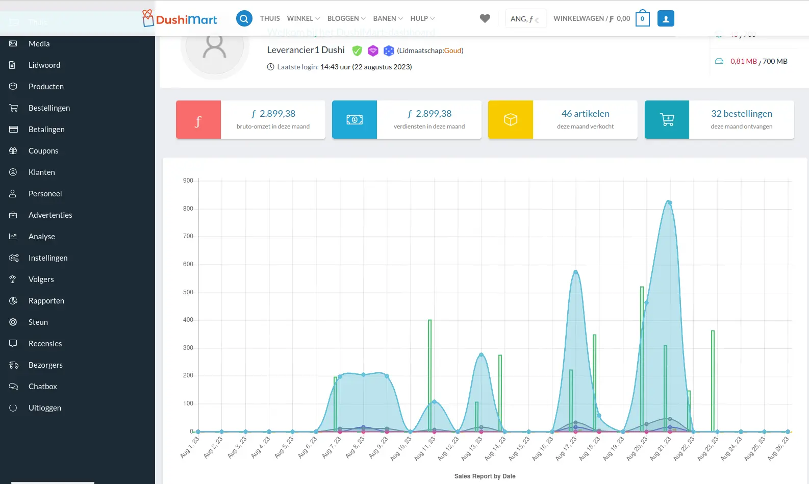 For example if the agreement is for 10% commission be allocated to DushiMart for the management of the vendor’s store and the sale was XCG. 100,-, then the commission will be XCG 10,- and the Withdrawal XCG. 90,-