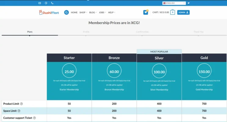 DushiMart allows you to define any number of store branches. Only one membership plan is required.
